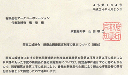 以下は、各府県(大阪府、京都府・和歌山県・滋賀県・徳島県・兵庫県)からの認定通知書です。 認定書をクリックすると拡大されます。